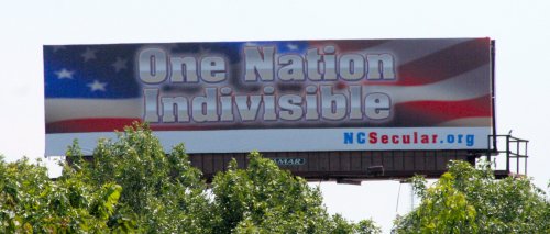 These words, superimposed over an image of the American flag, are appearing on billboards across North Carolina--from the mountains to the sea--in advance of the Independence Day week-long celebration. The billboards, scheduled to run for four weeks, are located in Asheville, Charlotte, Greensboro, Raleigh, Wilmington and Winston-Salem.